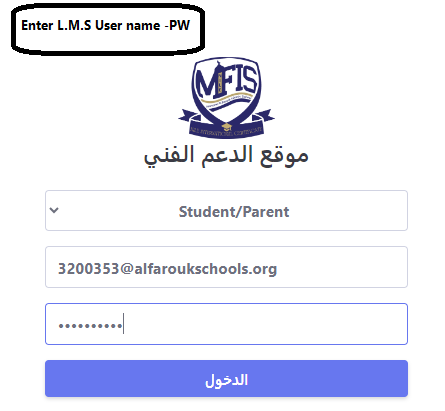 2- Click here and select your user type: Student/Parent.