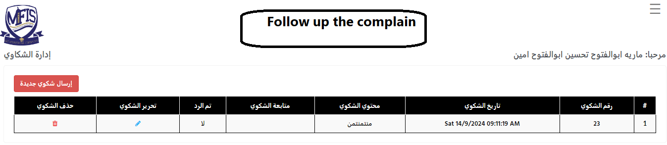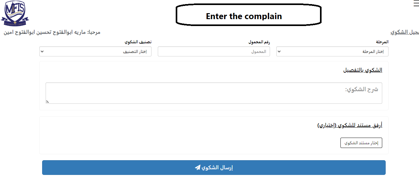3- Write and submit your complaint, including a phone number for contact if necessary. For guidance on how to use the system, refer to the help file here click here